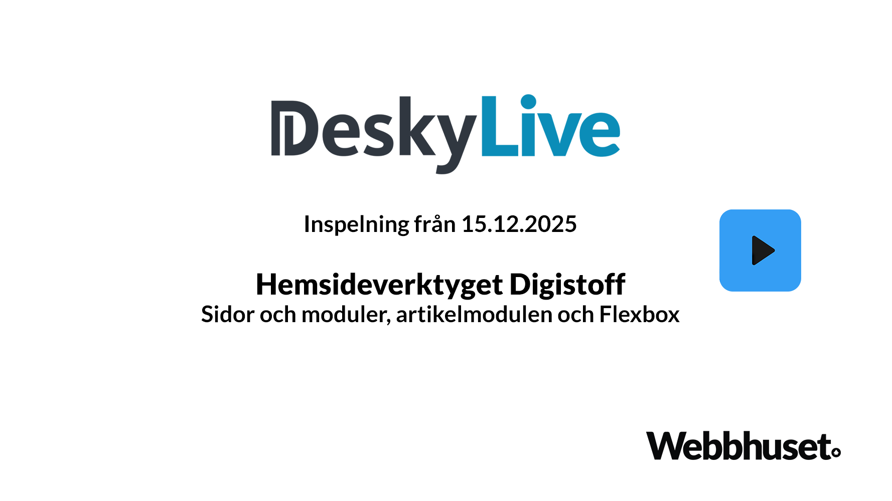 Höstens femte Desky Live ordnades den 15.12.2025 med tema Digistoff, Webbhusets hemsideverktyg. Detta var det andra tillfället som ordnades om vårt hemsideverktyg Digistoff.